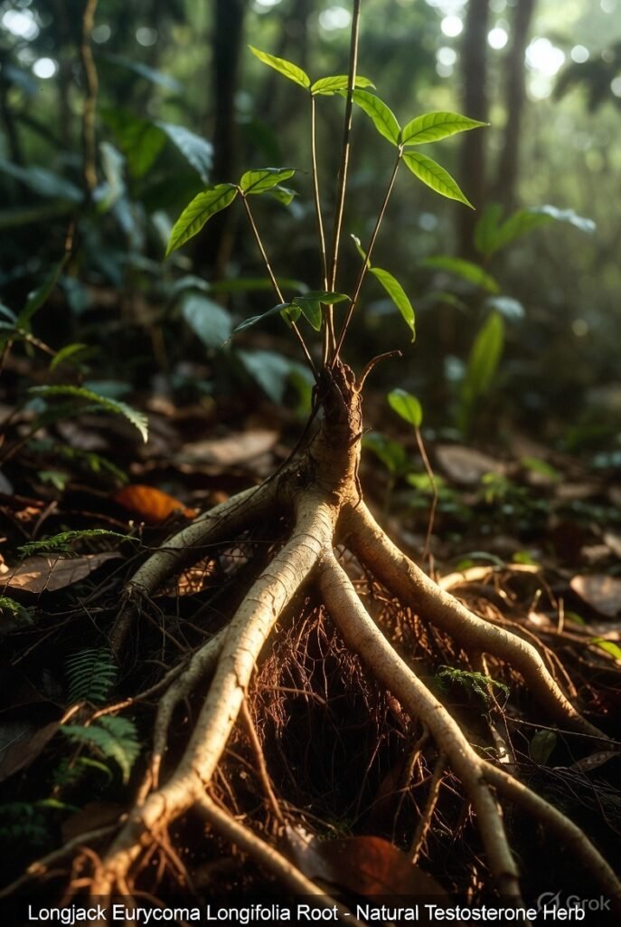 The root contains a unique class of bioactive compounds called quassinoids (including eurycomanone), alkaloids, and glycoproteins. These compounds work synergistically to stimulate the body’s own testosterone production by signaling the Leydig cells in the testes to produce more of this critical hormone — without any synthetic hormones or dangerous steroids.