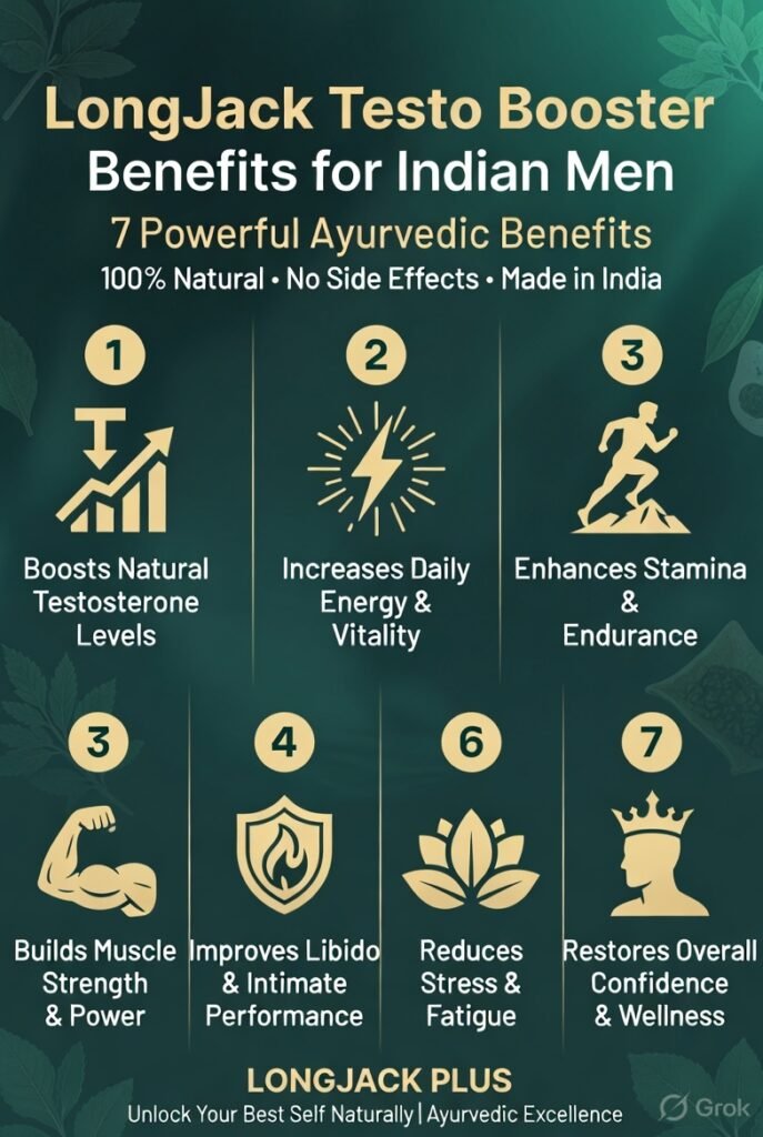 The cornerstone benefit of Longjack Testo Booster India is its ability to raise both total and free testosterone levels through natural mechanisms — no injections, no synthetic hormones, no dangerous side effects. For Indian men experiencing age-related or lifestyle-induced testosterone decline, this is a safe and effective path back to hormonal balance.