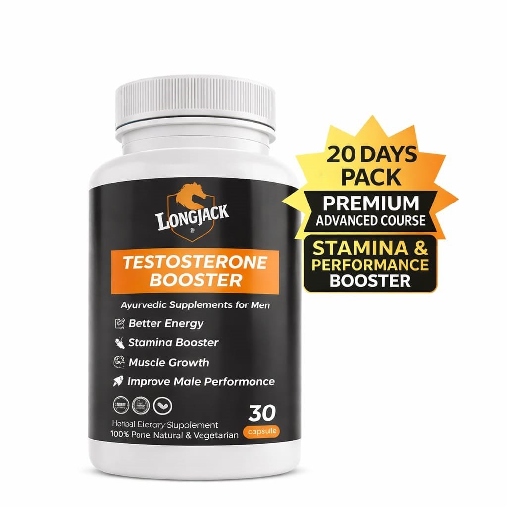 LongJack Ayurvedic Herbal | Stamina & Energy Natural Testosterone booster  (Best Testosterone Booster For Men Over 30, 40, 50 & 60) keeps your testosterone level upto required mark for a fulfilling libido, joyful intimacy, enhanced stamina and increased energy. It significantly boosts your vitality and libido. The greatest and safest way to deal with sexual issues is to take Longjack Testosterone Booster ayurvedic, which enhance sperm count, erection quality, penile size, and sexual performance.